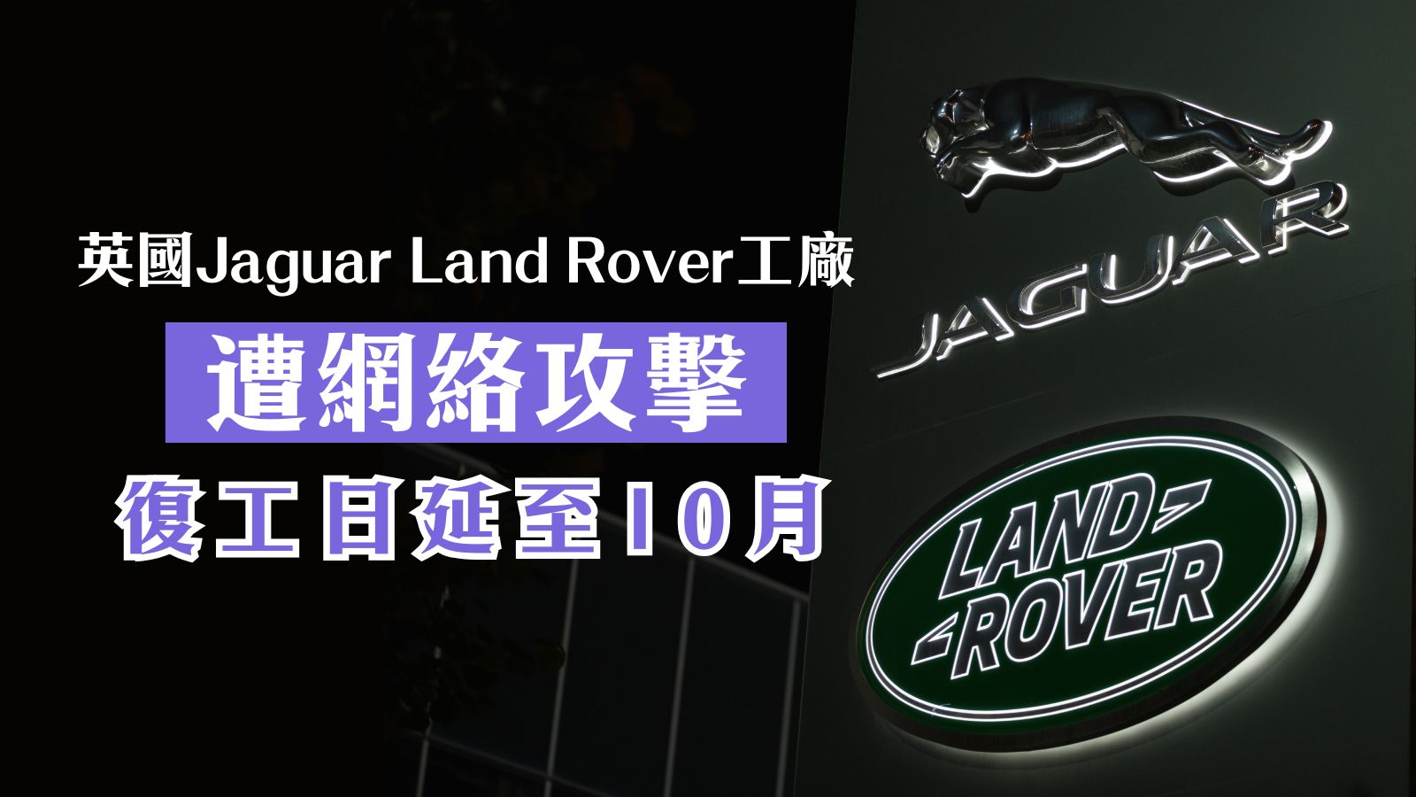 業務停頓|英國Jaguar Land Rover工廠遭網絡攻擊 復工日延至10月