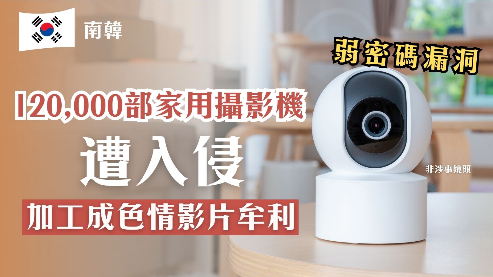弱密碼漏洞|南韓12萬部家用攝影機遭入侵 加工成色情影片牟利