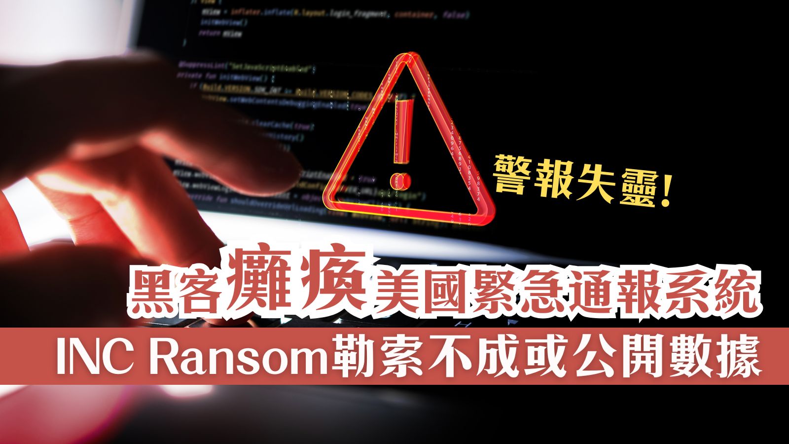 警報失靈|黑客癱瘓美國緊急通報系統 INC Ransom勒索不成或公開數據